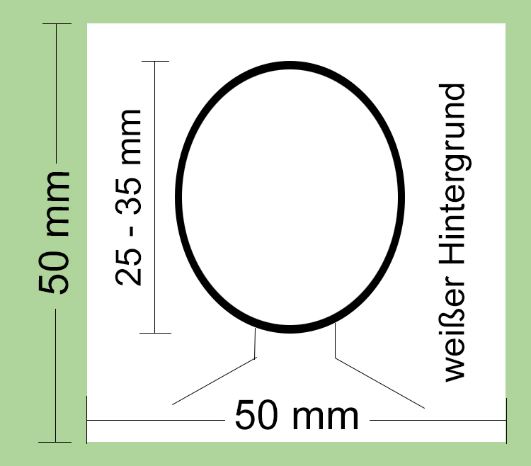 Das Foto soll 50 x 50 mm groß, in Farbe und mit weißem Hinter­grund sein (mit dem Kopf des Antrag­stellers in der Mitte). Fotos mit unruhigem oder dunklem Hinter­grund oder mit Muster sind unzulässig. Der Kopf von der Kinn­spitze bis zu den Haaren sollte ca. 25 - 35 mm groß sein und die Augen­höhe sollte sich ca. 28 - 35 mm – von der unteren Kante des Fotos gemessen – befinden. Das Foto darf keinen Rand haben.